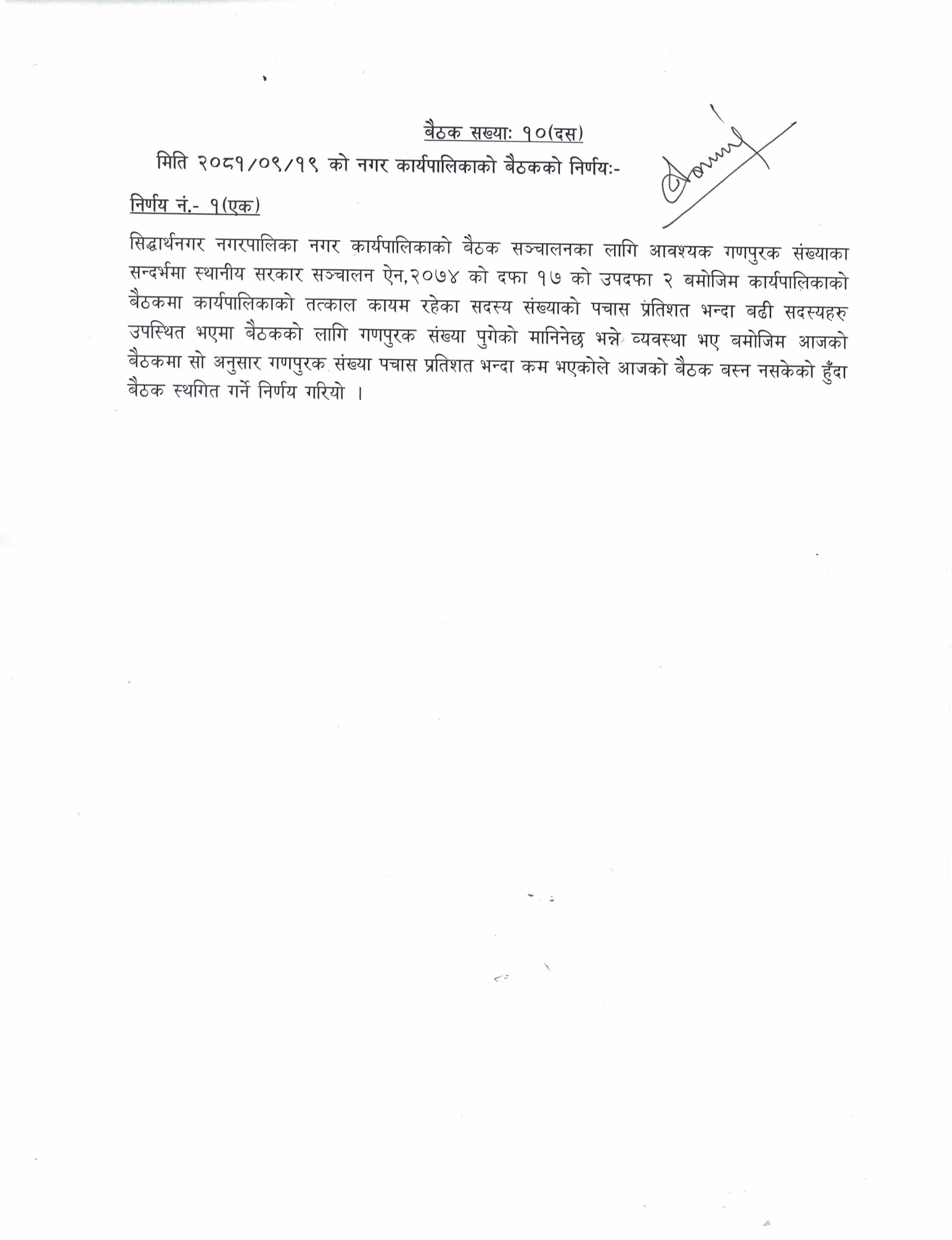 कार्यपालिका बैठक निर्णय २०८१/०९/१९