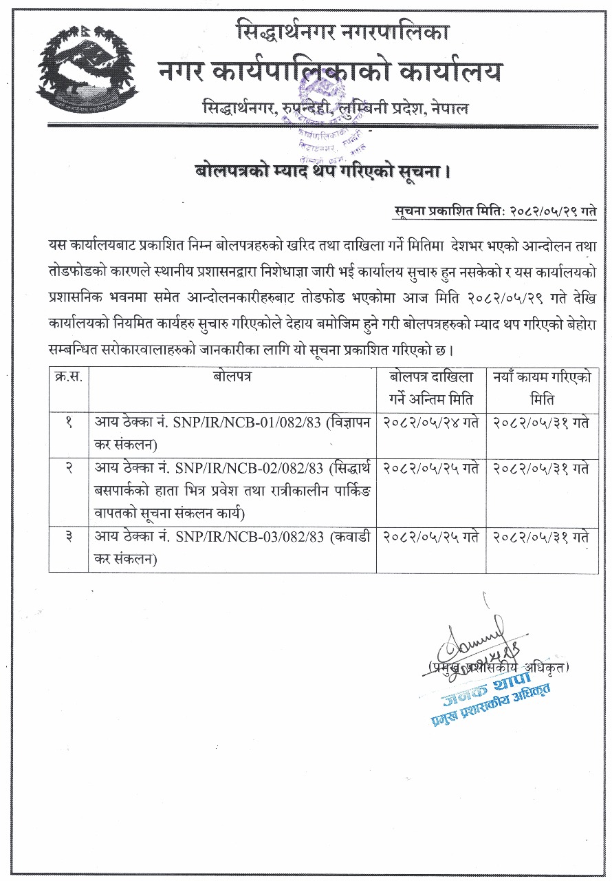 बोलपत्रको म्याद थप गरिएको सम्बन्धमा l
