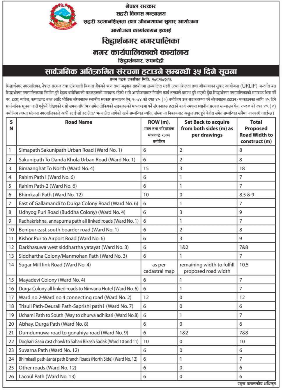 » सार्वजनिक अतिक्रमित संरचना हटाउने सम्बन्धि ३५ दिने सुचना ।